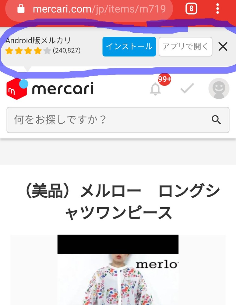 ブラウザでメルカリのURLを開いた時に、一番上に出てくる「アプリで